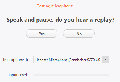 - If you don't hear an audio replay, use the drop-down menu or click No to switch microphones until you hear the reply. Click Yes when you hear the replay.