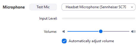 - Check Automatically adjust microphone settings if you want Zoom to adjust the input volume automatically.